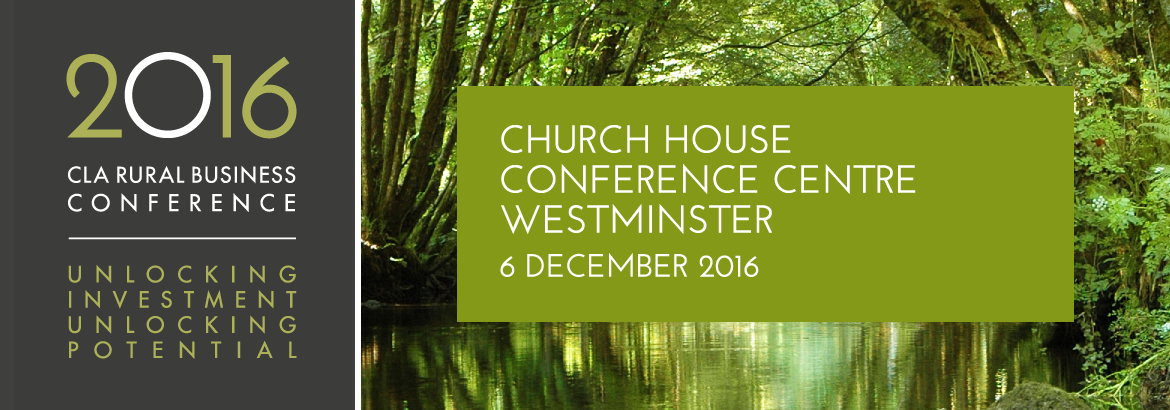 The CLA’s Rural Business 2030: Unlocking Investment, Unlocking Potential takes place on 6 December 2016 at Church House in Westminster. Delegate tickets cost £50 for CLA members, £350 for non-CLA members and can be purchased online at www.cla.org.uk/conference2016