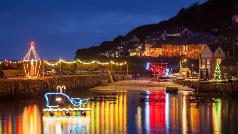 Mousehole (pronounced “Mow-zel”) is arguably one of Britain’s most visually spectacular Christmas villages. The tradition began in 1963 when local artist Joan Gillchrest suggested illuminating the harbour, and six decades on, the display has evolved into a vast, lovingly maintained installation, with over 7,000 bulbs and involving the entire village.