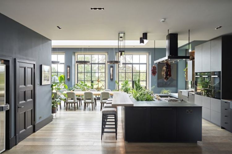 This country house might have been built over 100 years ago, but it’s been carefully updated throughout, bringing the home firmly into the 21st century. The property has plenty of original features – you can’t miss those soaring ceiling heights – yet there’s contemporary elements in every room that make the house perfectly suited to both entertaining and family life. The open-plan kitchen, breakfast and garden room is undoubtedly the centre of the home, with an oversized kitchen island (complete with a champagne sink!) and double-aspect views across the garden.
