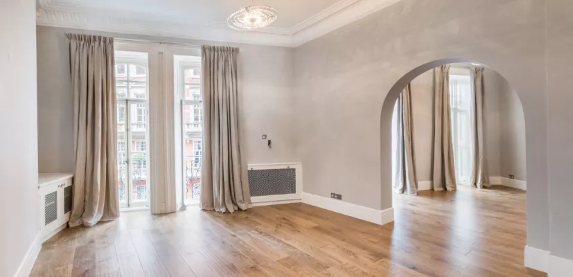 The flat boasts wood flooring in principle areas, exceptionally high ceilings and 24 hour porterage.