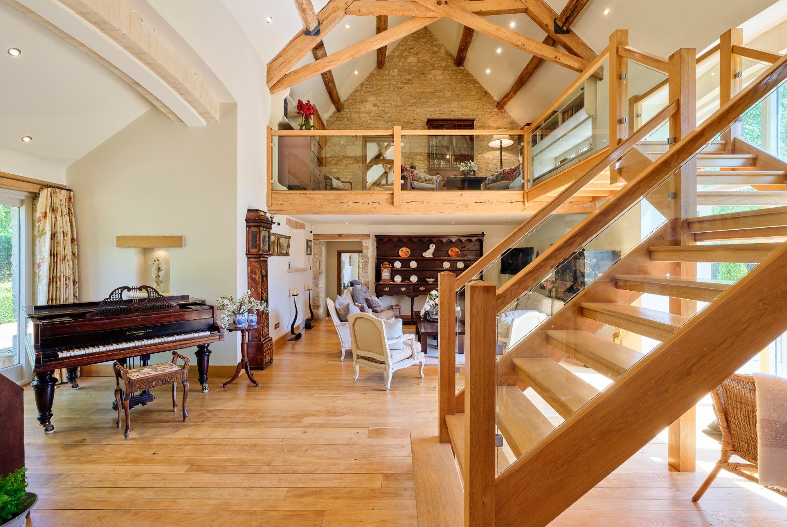 Oakbale House is an impressive barn conversion situated in a quiet rural setting close to Ampney St Mary. Converted from a former agricultural building, the house now provides substantial and carefully arranged accommodation, combining the character of the original structure with the scale, comfort and finish expected of a modern country home.