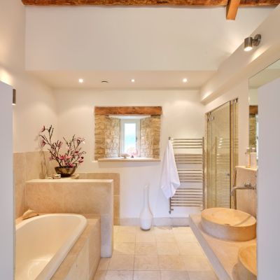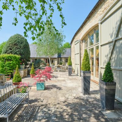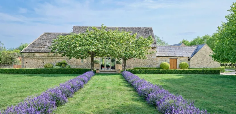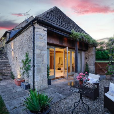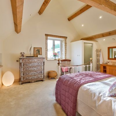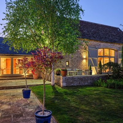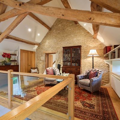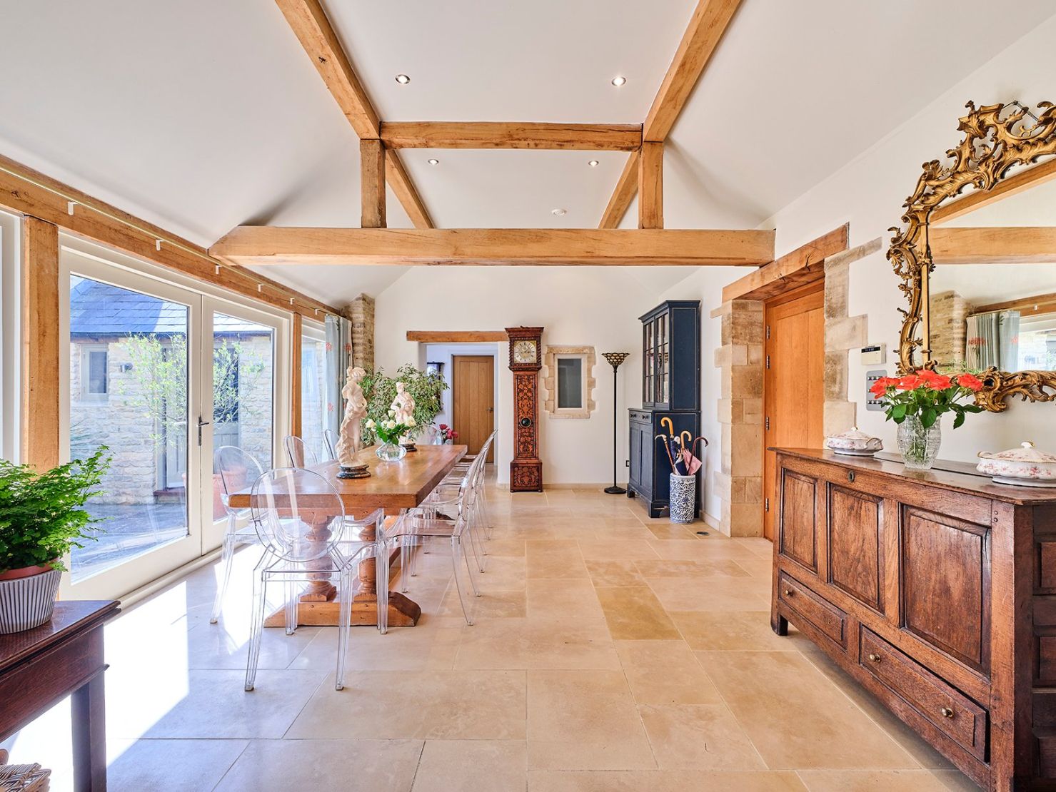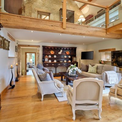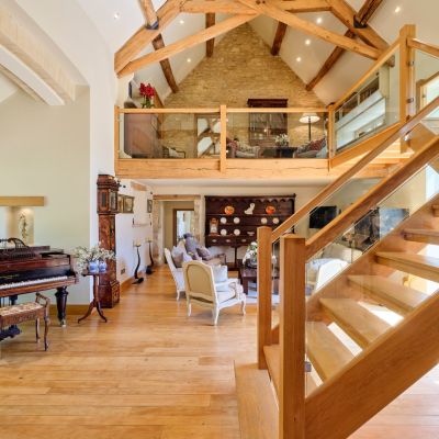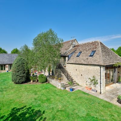 A beautifully converted Cotswold barn offering impressive open-plan living and five ensuite bedrooms