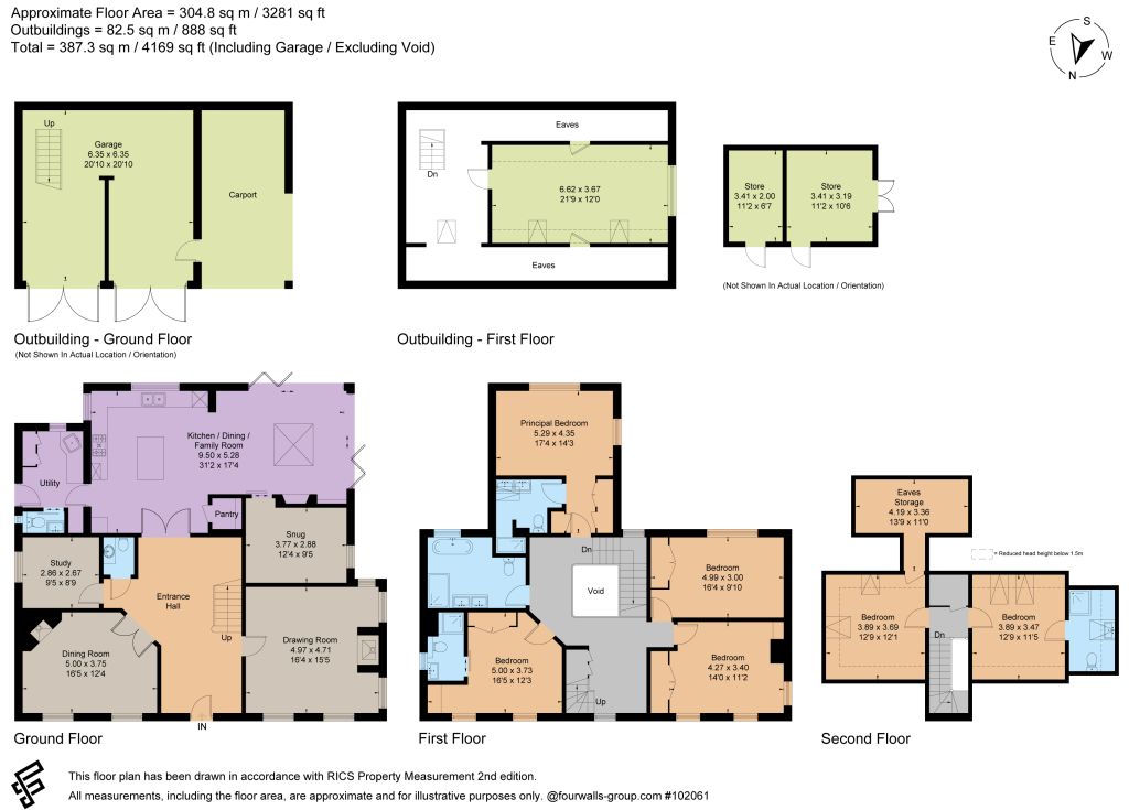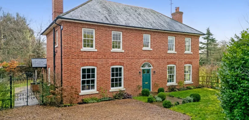 The property Constructed in 2018, Pennypond is a grand, attractive house built in the Georgian style from red brick with a pleasingly symmetrical front elevation with sash windows and a front door with decorative fan light. The house was built by the vendors to their own exacting specifications and is beautifully appointed, with charming features throughout. The entrance hall provides an inviting first impression, with its pretty chequerboard floor and feature staircase. It provides a central point from which to access the stunning sitting room, with its wood-burning stove; the formal dining room; the peaceful study; and the main open plan living area comprising a stunning contemporary kitchen/breakfast room, snug and family room – the latter with two sets of bifold doors onto the garden.