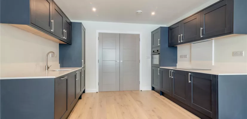 Apartment 3 is a superb first floor apartment with delightful views over Cambridge Street and the nearby church, Double doors from the welcoming hallway leads to a splendid 28ft open plan living, dining kitchen, creating the perfect space for entertaining. Designed with opulence in mind the kitchen area is flanked with contemporary wall and base Shaker-style units in a matt indigo with chrome handles and complimentary 20mm solid Quartz worksurfaces and splashback, providing plenty of storage. There are modern integrated appliances to include a CDA fan single oven and canopy extractor. Matrix frameless ceramic hob, dishwasher and fridge freezer and a single lever swan neck tap. The remaining space, configurable to the purchasers’ own requirements, has expansive picture windows that flood the space with plenty of natural light. There is ample space for a good-sized table and chairs and a separate seating area. There are two well-proportioned king-sized, double bedrooms with the impressive 23ft principal bedroom having picture windows with fabulous views and a contemporary en suite shower room. Whilst the second bedroom is serviced by a modern bathroom. Completing the accommodation is the added convenience of a separate WC and a useful utility room.