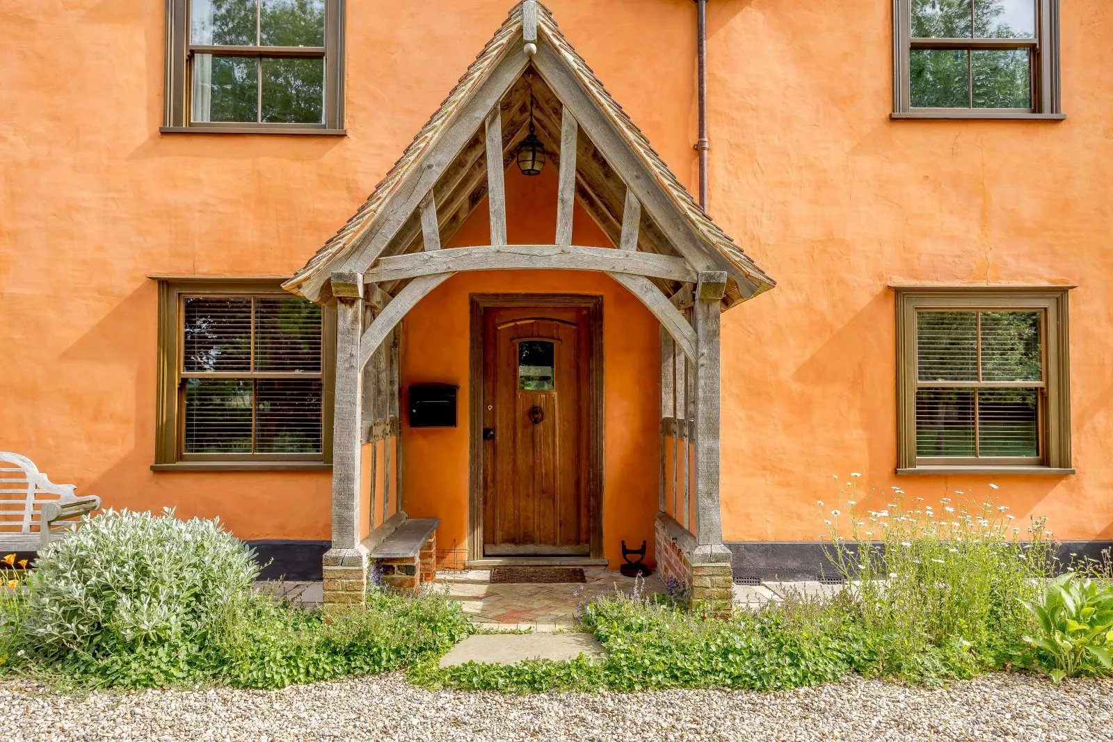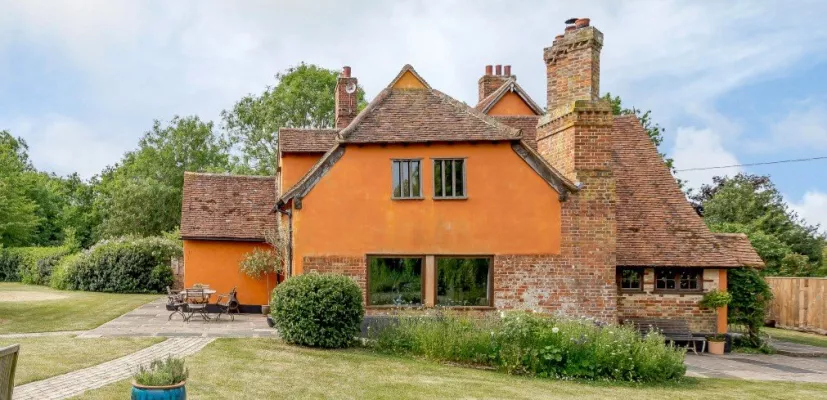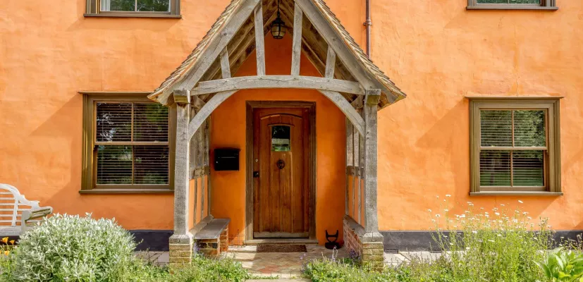 Two staircases lead to separate sides of the house. The rear, provides access to two double bedrooms, one of which features beautifully preserved wattle and daub. The main hall leads up to a spacious landing with three further double bedrooms, including the principal bedroom with en suite bathroom, a family bathroom and one of the bedrooms benefits from an en suite w/c. Hidden beside what would have been an original external mullion window is a special feature; a low door hidden beneath a beam connects the two first floors. A further bedroom with study area is on the second floor.
