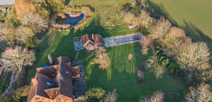 The property enjoys a private sweeping gravel driveway with ample space for parking in the car port or to the front of the house. There is an impressive summer house benefitting from shower, sauna, wood burner and exceptional views of the gardens and countryside beyond. This creates an ideal area for entertaining but can also be enjoyed as additional sleeping accommodation or studio space. A terrace and separate decking area allow for al fresco dining. Adjoining the summer house is an area currently used for storage, but could be enjoyed as a pool house or, subject to the necessary consents, the whole building could be converted to ancillary accommodation. The gardens have a vast number of mature specimen trees, wild and formal planting. Furthermore, is the large wildlife pond and areas of lawn interspersed with established borders, some wild meadows and most notable is the picture perfect backdrop of the rolling countryside beyond.