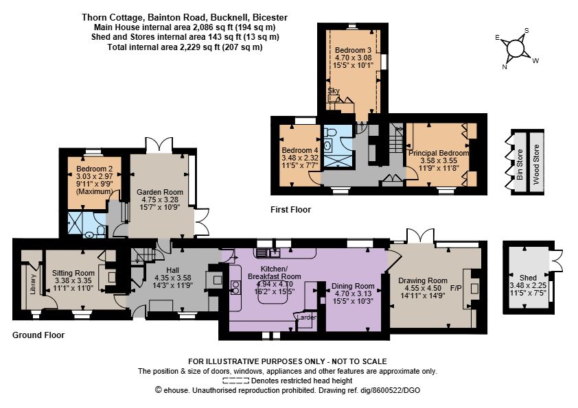 Thorn Cottage is a charming period property boasting plenty of period features including exposed beams and fireplaces benefiting from a semi-open plan layout as well as additional rooms that are seperate and can be shut off from the rest of the house. Formerly a village smithy, the property has four bedrooms and delightful gardens. Set in the desirable village of Bucknell, the cottage features characterful stone outside, while inside the accommodation has elegant, understated modern décor and fittings, combined with splendid original detailing, including exposed stone walls throughout. The property welcomes you with a spacious and characterful entrance hall. There are three comfortable, flexible reception rooms on the ground floor, including the drawing room with its vaulted ceiling, stone-built fireplace with a logburner and French doors opening onto the rear gardens. There is also a sitting room with a logburner and library, a dining room and a sun room with a south and west-facing dual aspect. Additionally, the kitchen has shaker-style units, a central island with a breakfast bar and a stainless steel range cooker and walk-in larder.Located on the ground floor is a double bedroom with as well as seperate shower room. Meanwhile, the first floor has a further three well-presented bedrooms, plus a shower room.