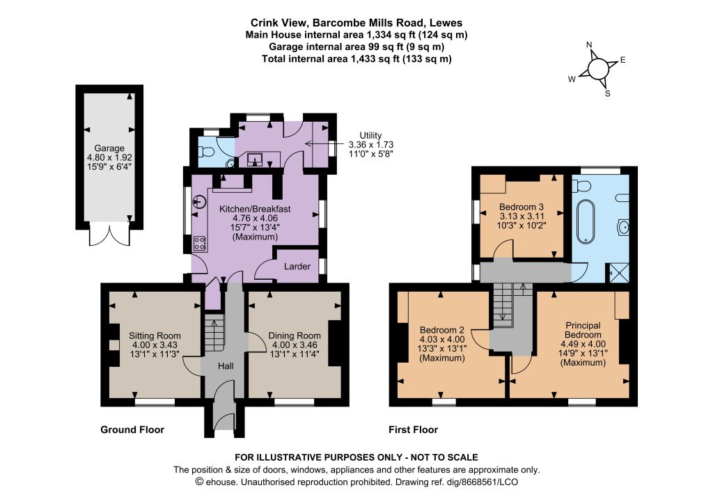 Crink View is an attractive double-fronted detached family home offering 1,334 sq ft of light-filled, flexible accommodation arranged over two floors. Configured to provide a practical and cohesive family and entertaining environment, the property has some elegant décors with a wealth of period features including sash glazing, high ceilings, deep skirting boards and original joinery and fireplaces. The ground floor accommodation flows from an entrance lobby and welcoming entrance hall with exposed wooden flooring and an original staircase rising to the first floor. It briefly comprises generous front aspect sitting and dining rooms, both with exposed wooden flooring and the former with a feature cast iron open fireplace with tiled insets. The ground floor accommodation is completed by an L-shaped dual aspect kitchen/breakfast room. It has tiled flooring, wood-lined and exposed brick walls, a fireplace with a Jøtul woodburning stove, base units and shelving, a complementary granite work surface, integrated appliances, space for a sizeable table for more informal meals, a door opening to a walk-in larder and further doors to the side aspect garden terrace and driveway and to a single-storey dual aspect fitted utility room, which has a Belfast sink and useful en suite cloakroom and also enjoys access to the garden terrace to the rear. On the first floor a split-level landing gives access to the property’s three well-proportioned double bedrooms, the principal and one other with fitted storage and stunning front aspect views over open fields, together with a family bathroom with exposed wooden flooring, a freestanding rolltop bath and separate shower.