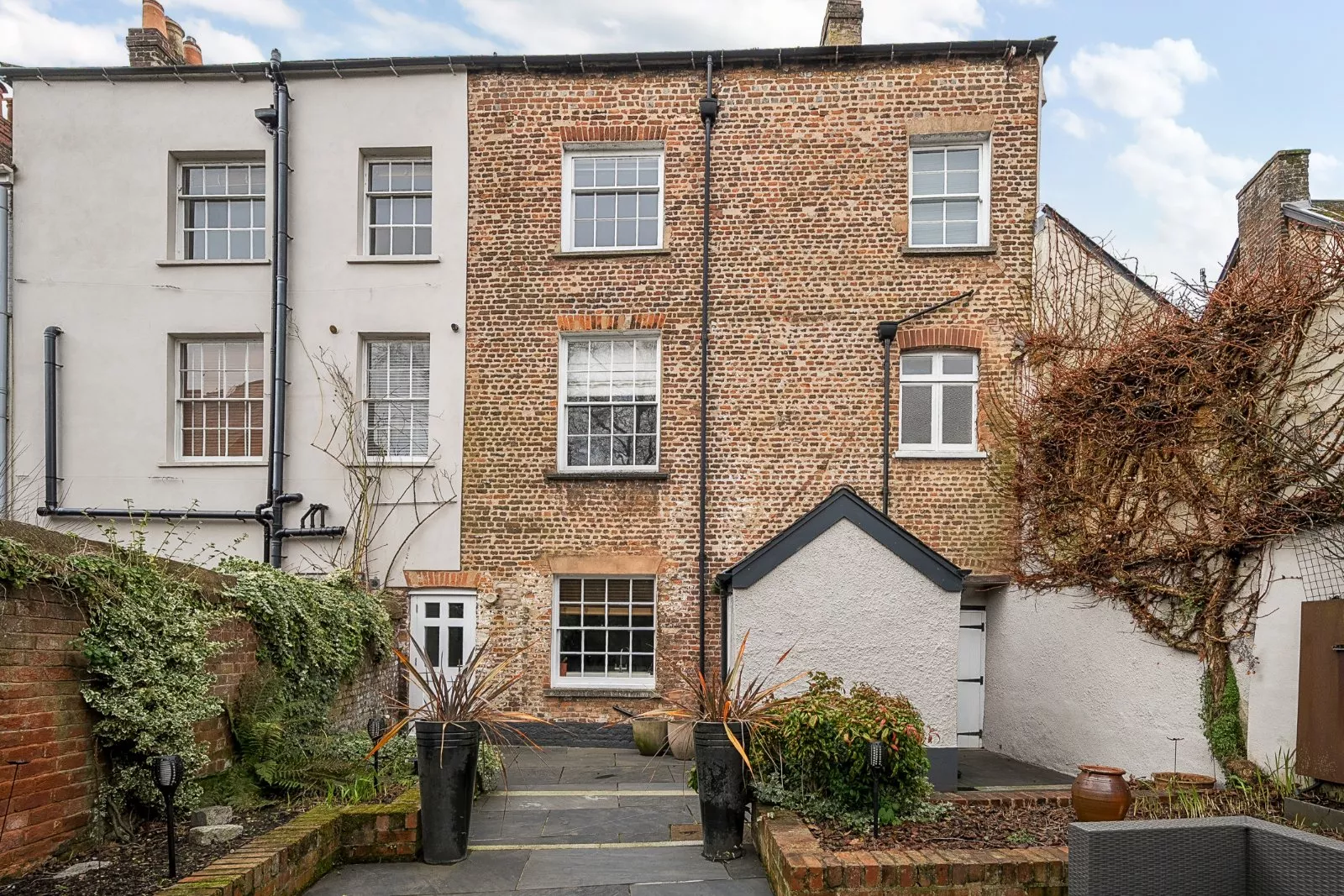 The courtyard garden to the rear is arranged around a paved terrace with raised brick beds, planted with a mix of shrubs, grasses and specimen trees, while climbing plants adorn the walled surrounds. A garden room with an adjoining store sits to one side, with glazed doors opening directly onto the terrace, ideal for year-round use. There is direct access from the rear garden out onto Bartholomew Terrace, which also allows for a useful storage area. There is parking in the adjacent car park, with an annual permit available.