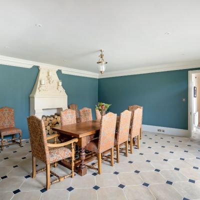 The ground floor is centred around a traditional courtyard arrangement, creating a strong sense of light, flow, and connectivity throughout the principal reception rooms. The kitchen is a generous and welcoming space, supported by a separate pantry and positioned ideally for both everyday use and entertaining. Adjacent reception rooms include a formal dining room, family room and sitting room, providing flexibility for a variety of uses and lifestyles.