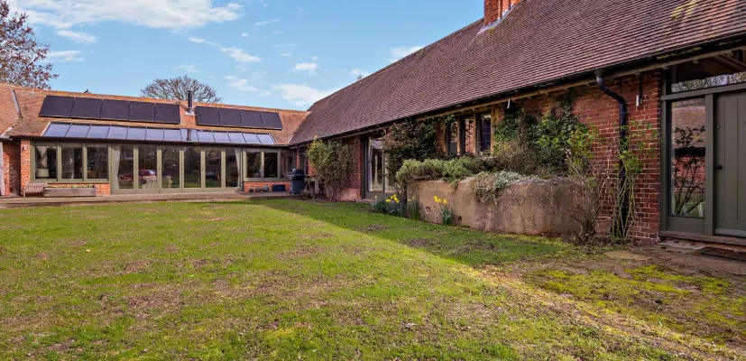 Approached over a tree-lined private road, the driveway sweeps around the property to the main courtyard, parking area and five-bay cart lodge. The area provides ample parking for a number of vehicles, boat storage and also provides useful workshop space, whilst also allowing for scope to be converted into further living accommodation, subject to the necessary consents. Another range of unconverted stables abut the ground floor bedroom; whilst currently used as excellent storage, they also offer further potential for conversion subject to planning, either as ancillary accommodation or further increasing the internal footprint of the main house. The house forms a courtyard area which is primarily laid to lawn with a raised decking area, creating a sheltered space ideal for entertaining or dining al fresco. The remainder of the gardens lie to the north-west of the house and provide further space for relaxing or play; mainly laid to grass, there is a substantial pond, all interspersed with mature trees and offering exceptional views over neighbouring countryside towards the River Deben.