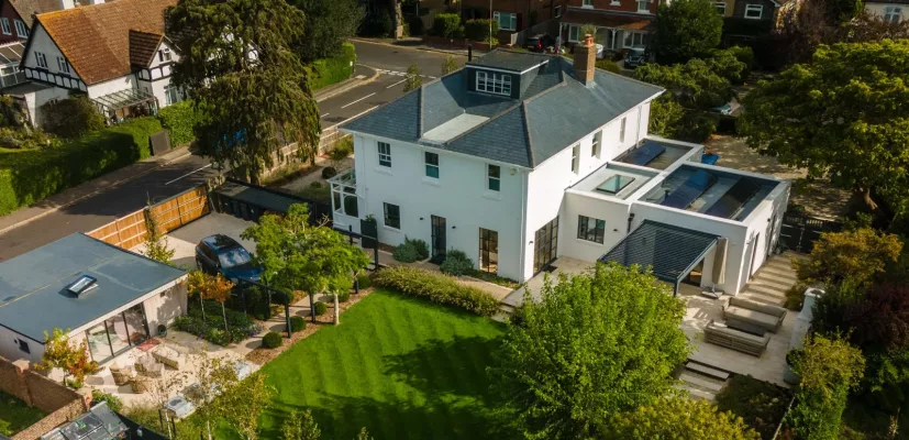 The garden has been beautifully designed and encompasses a large terrace with a remote-controlled roof incorporating an outstanding outdoor kitchen/bbq setup and pizza oven. Beyond is a further terrace with a fireplace, ideal for evening entertainment/relaxation.