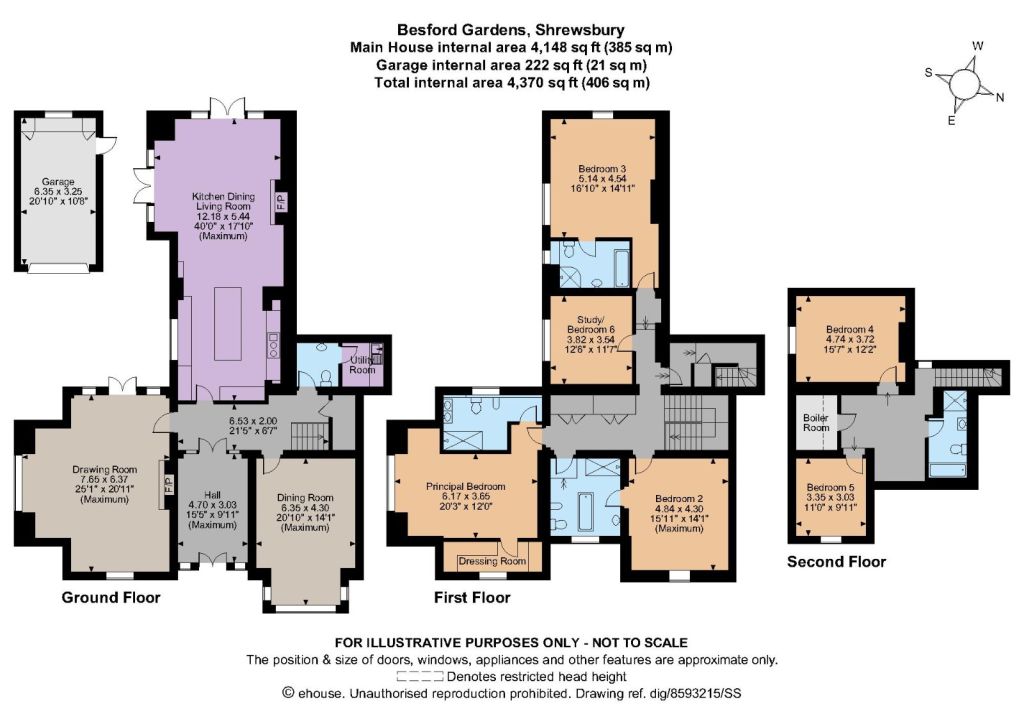 To the first and second floors five large double bedrooms plus study or bedroom six are complemented with a shower room and three further bathrooms with walk in shower cubicles. The two large landings feature built in large airing double door cupboard and a boiler room.