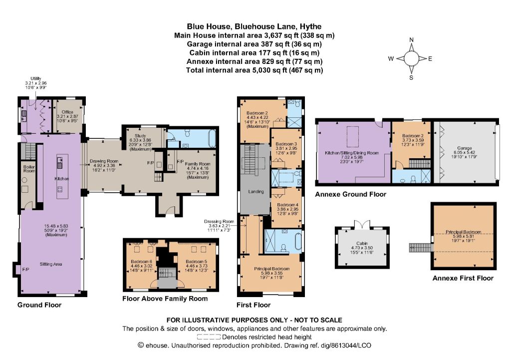 On the first floor, the large principal suite has picture windows, a dedicated dressing room and a deluxe en suite bathroom. There are three further bedrooms, two sharing a Jack and Jill bathroom and one with an en suite shower room.