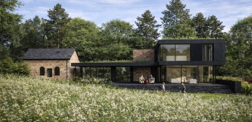 This bold scheme blends past and present in a seamless fusion of materials and design creating a landmark contemporary residence in a secluded setting. (Folkestone & Hythe District Council Planning ref: 24/1619/FH).