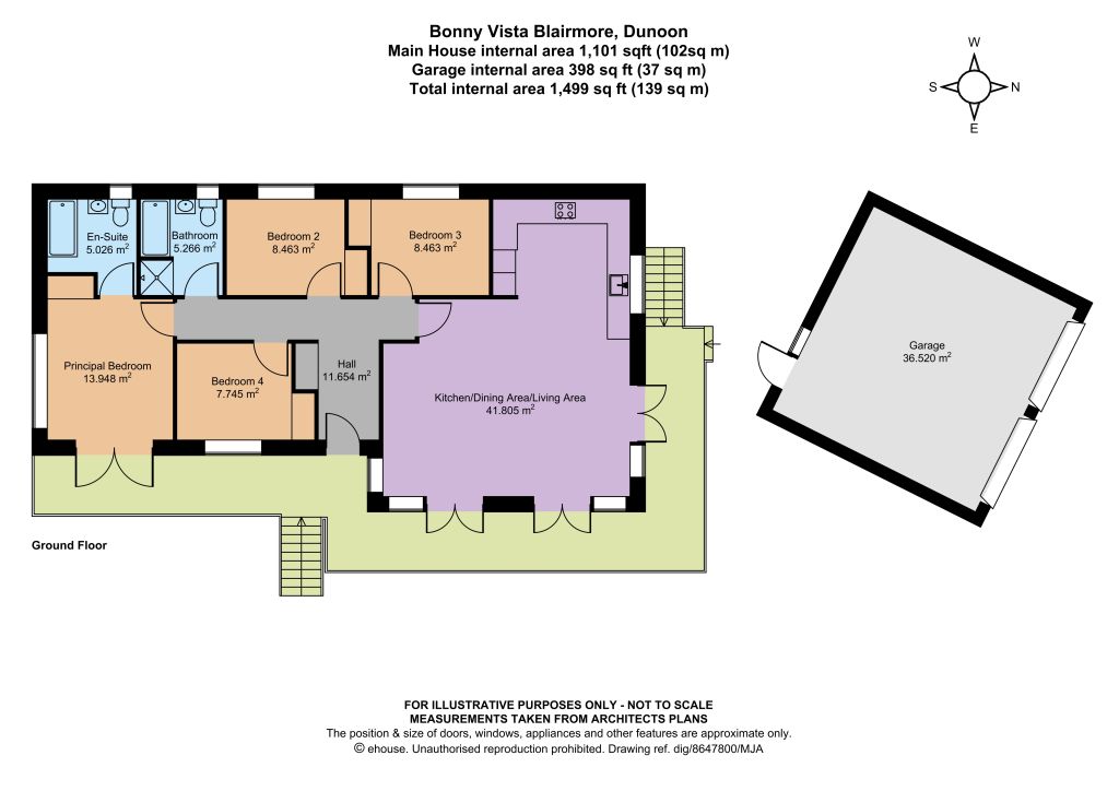 Accessible from the shore road neighbouring the western shore of Loch Long and having plenty of kerb appeal, Bonny Vista will be approached over a private driveway curling up to the property’s elevated position which has been planned to provide ample private parking and give access to a detached double garage. The ground rises to the front door and to a large, raised wraparound terrace accessible from two aspects of the kitchen/dining/living room as well as from the principal bedroom, offering stunning views over the loch and sea and country vistas including the Roseneath Peninsula and surrounding countryside. Set against a backdrop of mature trees and woodland, the remaining garden will offer the prospective purchaser an ideal opportunity to create a serene waterside haven, further maximising the stunning coastal views and providing stunning opportunities for entertaining and al fresco dining.
