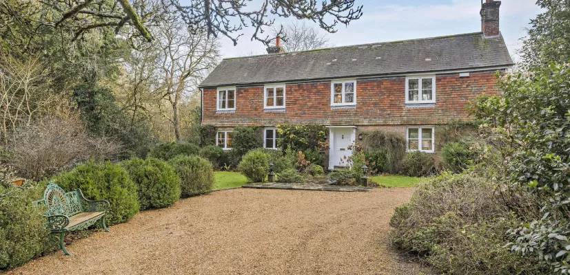 Bourne Farmhouse is an attractive double-fronted period family home offering almost 2,500 sq ft of light-filled, flexible accommodation arranged in an L-shape over two floors. The property sensitively combines modern amenities, quality fixtures and fittings, and elegant neutral décor with period features, including exposed wall and ceiling beams and original fireplaces.