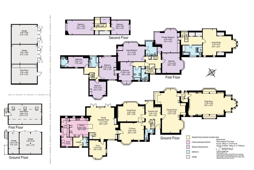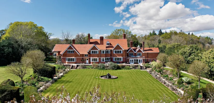 Bowden dates from 1897, having been designed and built by the Arts & Crafts architect Arnold Mitchell, for Sir Benjamin Baker, the civil engineer who was best known for his involvement in the design and building of the Forth rail bridge, as well as the development of the early underground railways in London. More recently the house was owned by Pangbourne College and used as the junior school. Since the current owners bought the house in 2004, they have carried out a comprehensive refurbishment and re-modelling, preserving all of the original architectural and decorative features, including William Morris patterned mirrored inserts, William de Morgan tiled fireplaces, wood panelling and herringbone wood block flooring. The house now offers outstanding family and entertaining accommodation. Bowden is entered through the central reception hall, with open fireplace and wood block herringbone floor and panelling. A door leads through to the drawing room with its large inglenook fireplace, bay windows and door through to the party room with ionic columns and wood wall panelling running the length of the room, with inset benches along either side and a magnificent barrel vaulted ceiling, with ornate floral mouldings. The ground floor also comprises the wood panelled dining room, with open fireplace, TV room and snug, as well as the large kitchen with family sitting and dining areas with wood burner. The fully equipped kitchen has a large central island and access to the utility room, boiler room and rear lobby with separate WC and shower room. The first and second floors comprise generously proportioned rooms, including the large principal bedroom with its own bathroom with shower, with access to a wonderful library/study over the party room. Two of the bedrooms have en suite shower rooms and the further six bedrooms share two family bathrooms and a separate first floor WC. A secondary staircase from the kitchen leads up to the first floor of the north wing, which could be used for staff. The layout of the accommodation can be found in the enclosed floorplans.