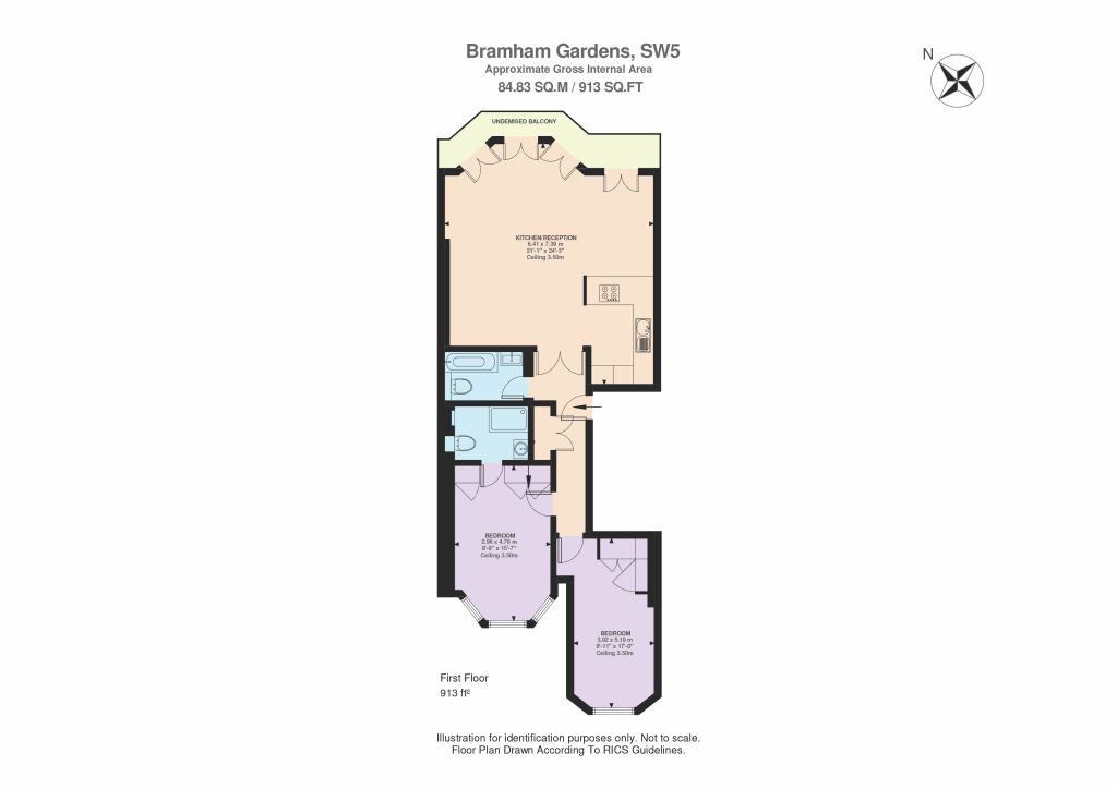 South Kensington Estate & Letting AgentsAt the front of the home is a bright, generously sized open-plan kitchen and reception space. Floor-to-ceiling French doors open directly onto a delightful balcony ideal for outdoor dining and hosting while the impressive 3.5m ceiling height adds further volume and elegance to the room.