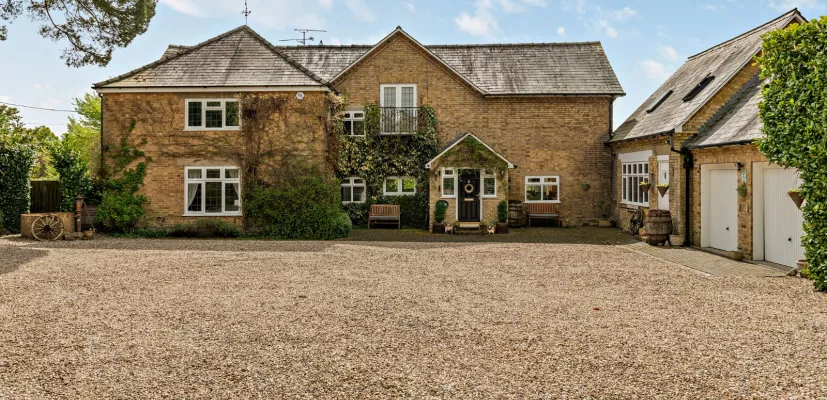 Screened by mature hedging with plenty of kerb appeal, the property is approached through double wooden electric gates over a gravelled driveway, providing private parking and access to an integral double garage with attached garden store. There is an additional electric gated entrance to a further detached double garage allowing extra vehicle access to the grounds.