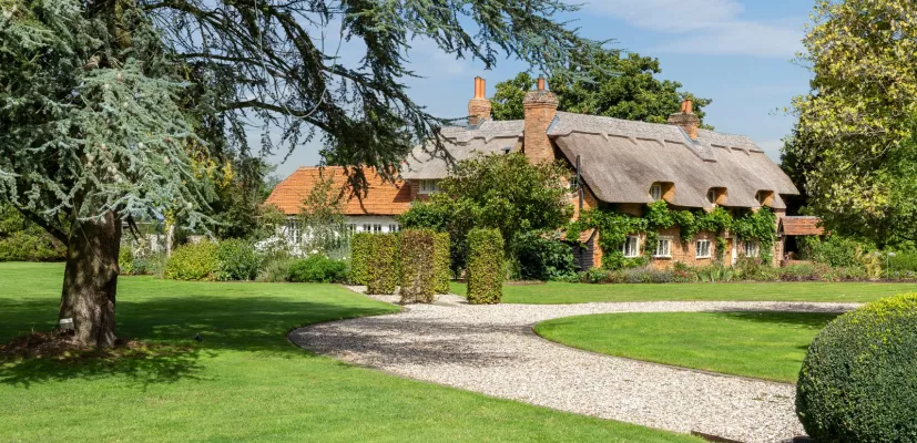 Lane End Cottage is a characterful family home, which in recent years has been renovated and brought up to a high level of sophistication by the current owners. The house now has the seductive feel of a well maintained period property, with a stylish and up-to-date interior. Of particular note is the large kitchen/breakfast room which flows seamlessly into a family living space, great for relaxing or entertaining, and there are French doors leading out to beautiful gardens. The original and oldest part of the house is the sitting room, which has beautiful, exposed beams which have been sand blasted back to their original pale oak colour, which is highly attractive. The accommodation at Lane End Cottage is extremely versatile with either one or two bedrooms and a shower room located on the ground floor, and a further three bedrooms and 3 bathrooms upstairs. The main bedroom also has a dressing room with bespoke cupboards. There are wonderful views across the gardens and grounds.