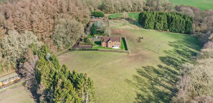 Long Court Farm is accessed via a singletrack access lane, with mature hedgerows and overhanging trees to one side, and open grassy paddocks to the other. The lane leads to the house and to the farm courtyard, off which there is access to the main detached outbuilding, which includes six stables, a tack room, a butchery, a barn, a workshop, an office and shower facilities. There are also two further stables buildings. The land extends to approximately 9.5 acres and features several large grassy paddocks for grazing livestock. The farmhouse itself is surrounded by gardens with lawns and border hedgerows, and also offers a southwest-facing patio.