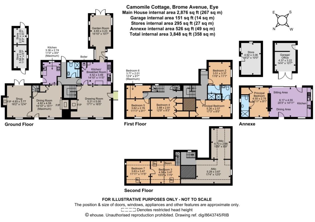 Two separate staircases rise to the first floor. To one end are two spacious double en suite bedrooms offering views over the gardens; with three further bedrooms located to the first floor at the opposite end of the house, with two further bedrooms located to the second floor. A large attic space also allows for additional storage or potential for conversion, subject to the necessary consents.
