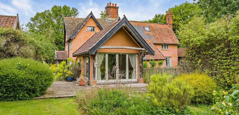 A pair of cottages forming one dwelling, along a single track lane to the edge of the town of Eye.