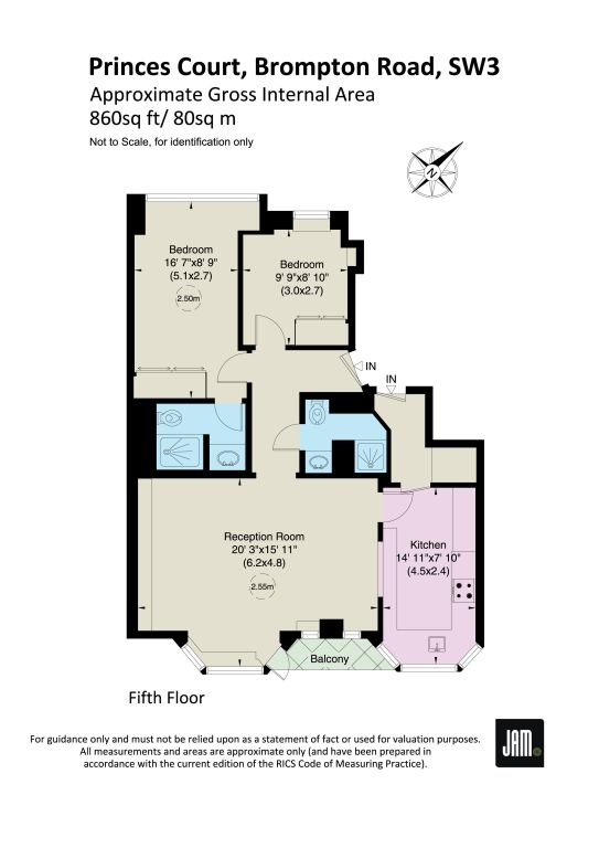 A well-presented two-bedroom, two-bathroom apartment of approximately 860 sq ft/80 sq m, located directly opposite Harrods on the fifth floor of a sought-after residential building. The property benefits from excellent lent natural light due to its dual aspect, a private balcony with views over Brompton Road and Harrods, and a newly insta led, quiet Dailkin air conditioning unit. Finished to a high standard, the apartment includes Italian marble bathrooms, granite kitchen surfaces, wooden flooring in the living areas, newly fitted carpets in the bedrooms, and quality furnishings throughout. Princes Court is a purpose-built residential block with 24-hour porterage and security, located directly opposite Harrods and ideally situated for the world class amenities of Knightsbridge and Sloane Street and within walking distance of Chelsea and South Kensington. The beautiful open spaces of Hyde Park are also close by. This property would make a perfect pied a terre in the heart of central London and also offers excellent investment opportunities.