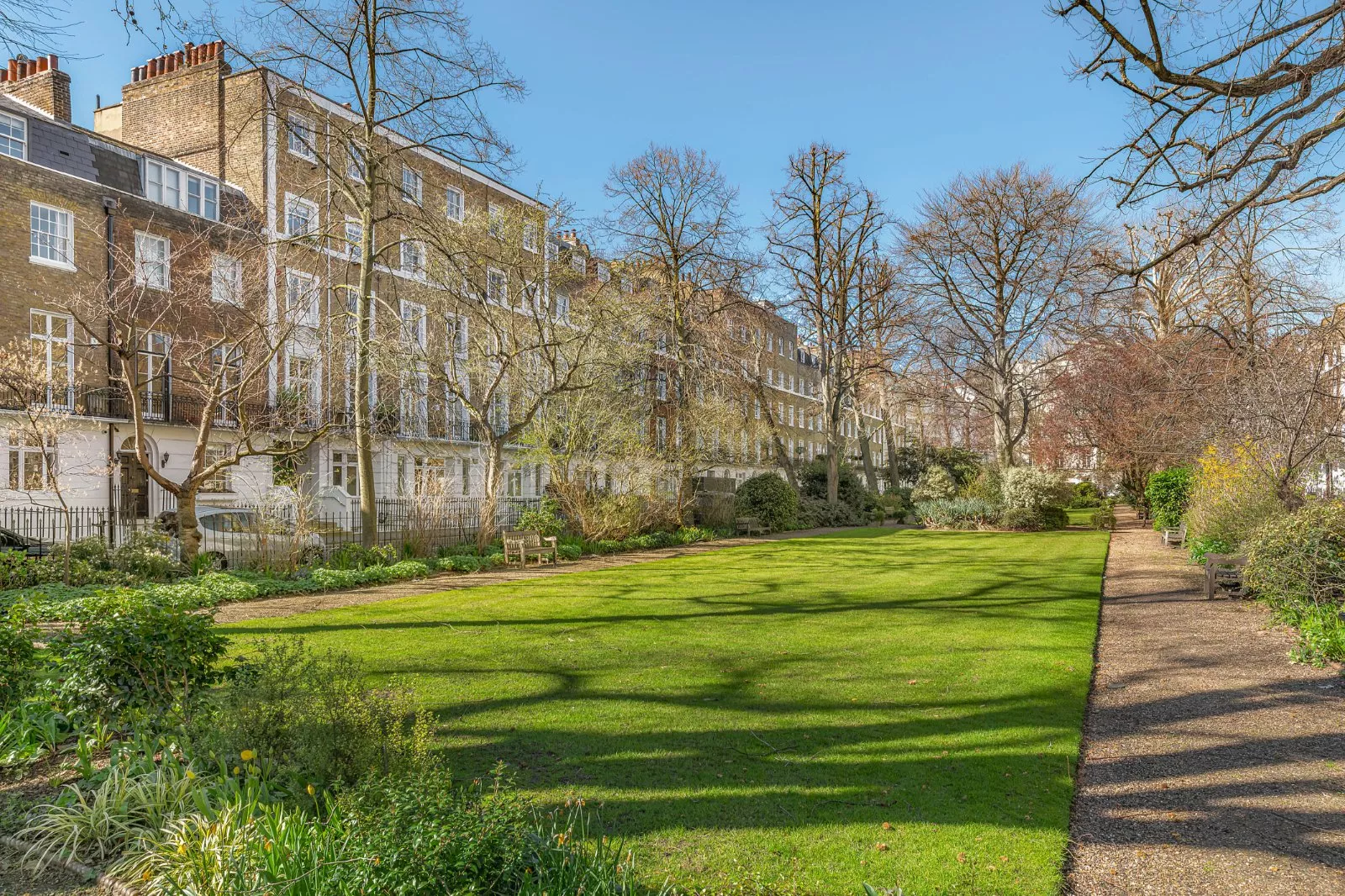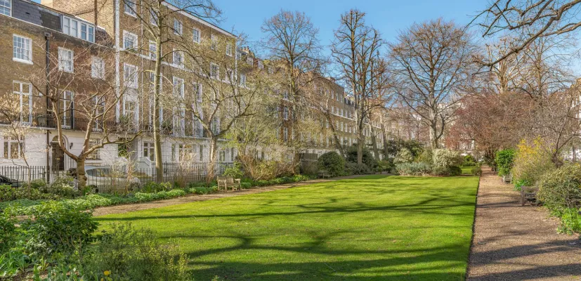 History Brompton Square is a distinguished and secluded garden square built between 1821 and 1835, enclosed by stucco fronted Grade II listed houses reflecting its Regency-era origins. Occupying approximately 5 acres, this handsome square features a 0.7 acre private garden, for exclusive use of the residents, with expansive lawns, mature shrubs, and a variety of London plane, lime, and beech trees.