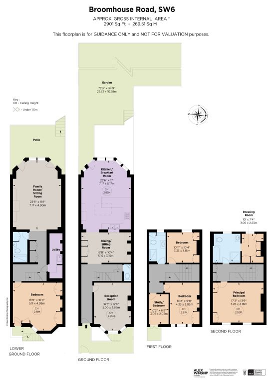 The basement floor provides excellent flexibility, featuring a generous bedroom, shower room, utility room and an expansive reception room that opens directly onto the garden. This level works perfectly for guest or staff accommodation and provides an invaluable extra reception room. The first floor provides well-balanced family accommodation with two excellent bedrooms, a family bathroom and a study which could equally function as a small bedroom or nursery.
