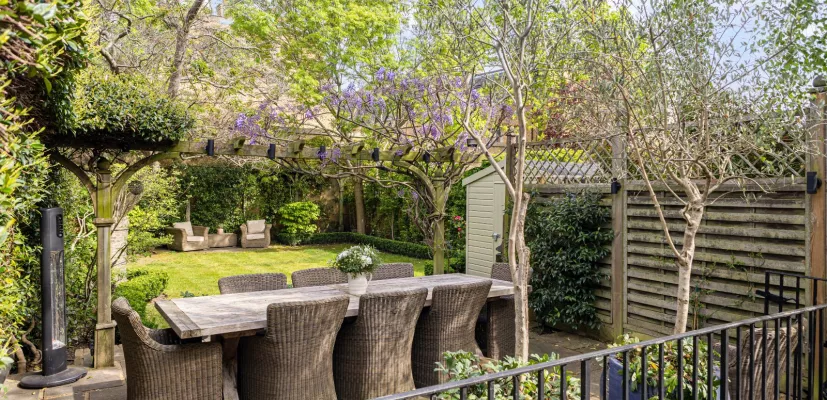 An exceptional house which opens onto one of the area’s most remarkable private gardens.