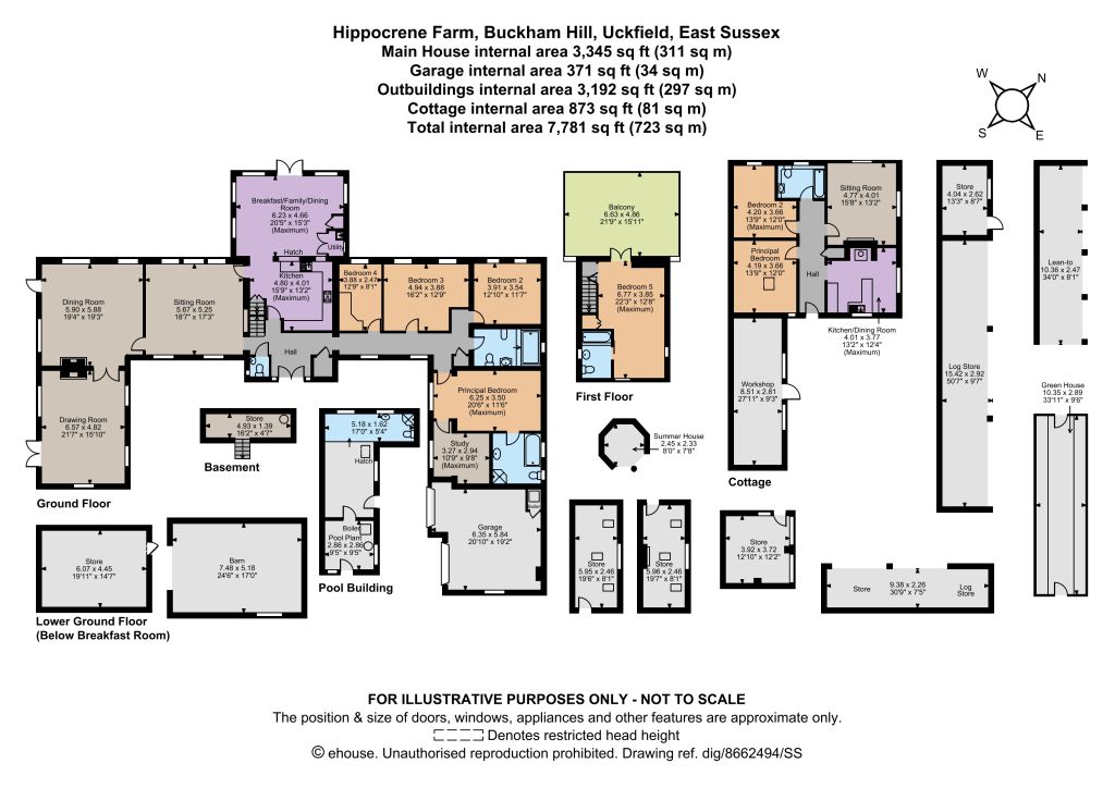 The property is located at the end of a singletrack lane and driveway, which leads to the courtyard at the front of the house, where there is plenty of parking space and access to the integrated double garage. The property features various other large outbuildings, including a barn, a workshop, several stores, an open-sided log store, a lean to and a large, elegant greenhouse. The house and outbuildings are set in delightful and extensive gardens and grounds, with west-facing walled gardens that feature well-tended lawns, a patio area for al fresco dining and border beds with a wealth of established shrubs, perennials and hedgerows. The gardens also include a heated swimming pool with a diving board. There is a pool house, which has shower facilities, while beyond the gardens there are open fields and paddocks, surrounded by woodland. Agents note: 8.49 acres of woodland is held in a trust that is owned by Hippocrene Farm and its three neighbours.