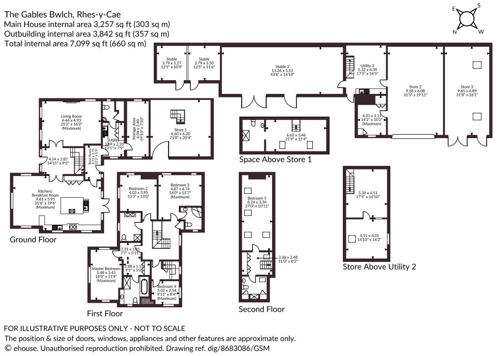 The house includes outbuildings and extensive grounds and is set in a peaceful and picturesque position, surrounded by rolling North Wales countryside. Outbuildings include Monarch stables, feed room, double garage and a double height barn suitable for storing agricultural equipment or horse lorries, all extending to almost 4,000 square feet and offering scope for redesigning.