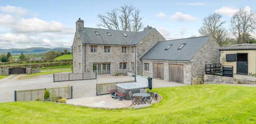 The Gables is a handsome stone-built detached house, offering more than 3,000 square feet of attractive and comfortable accommodation, including five bedrooms, and offers significant potential for further development of existing stores and outbuildings. The original dwelling was completely rebuilt by the owners to exacting standards, positioning the home to enjoy the views of the Clwydian Range. Using Master Craftsmen, local materials such as Welsh roof slate and stone lintels from the local quarry, oak windows, doors and gates, and high specification sound proofing insulation, The Gables is an exemplary property.