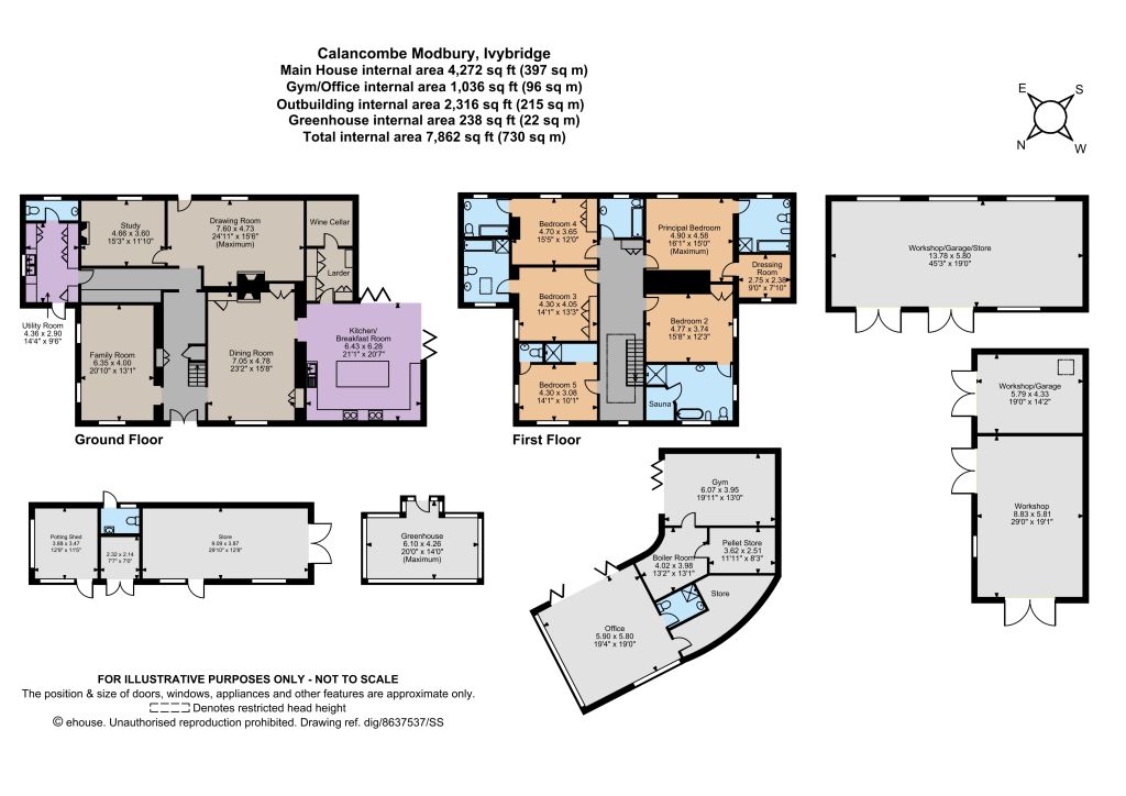 - Home office, gym, private garden with Alitex greenhouse, timber garage & potting shed