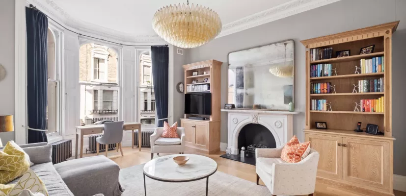 The raised ground floor is centred around a beautifully proportioned double reception room, featuring high ceilings (3.45M), period cornicing and a working gas fire place an ideal space for both everyday living and formal entertainment. To the rear of the raised ground floor there is a well presented modern kitchen which flows into a bright south-facing glass extension which opens out on to a private south facing garden. Upstairs, the principal bedroom provides well balanced accommodation with a completely separate dedicated dressing area and stylish en-suite bathroom. A second well sized double bedroom is serviced via a separate bathroom to complete the accommodation. Situated on Campden Hill Gardens, a peaceful cul-de sac, the property enjoys a quiet and highly desirable residential setting.