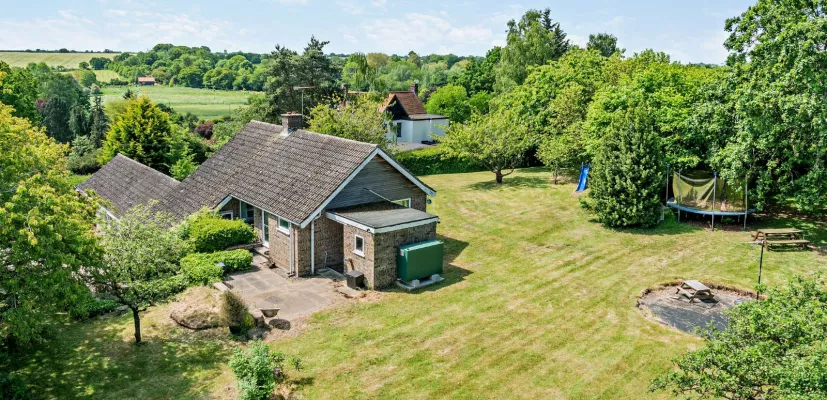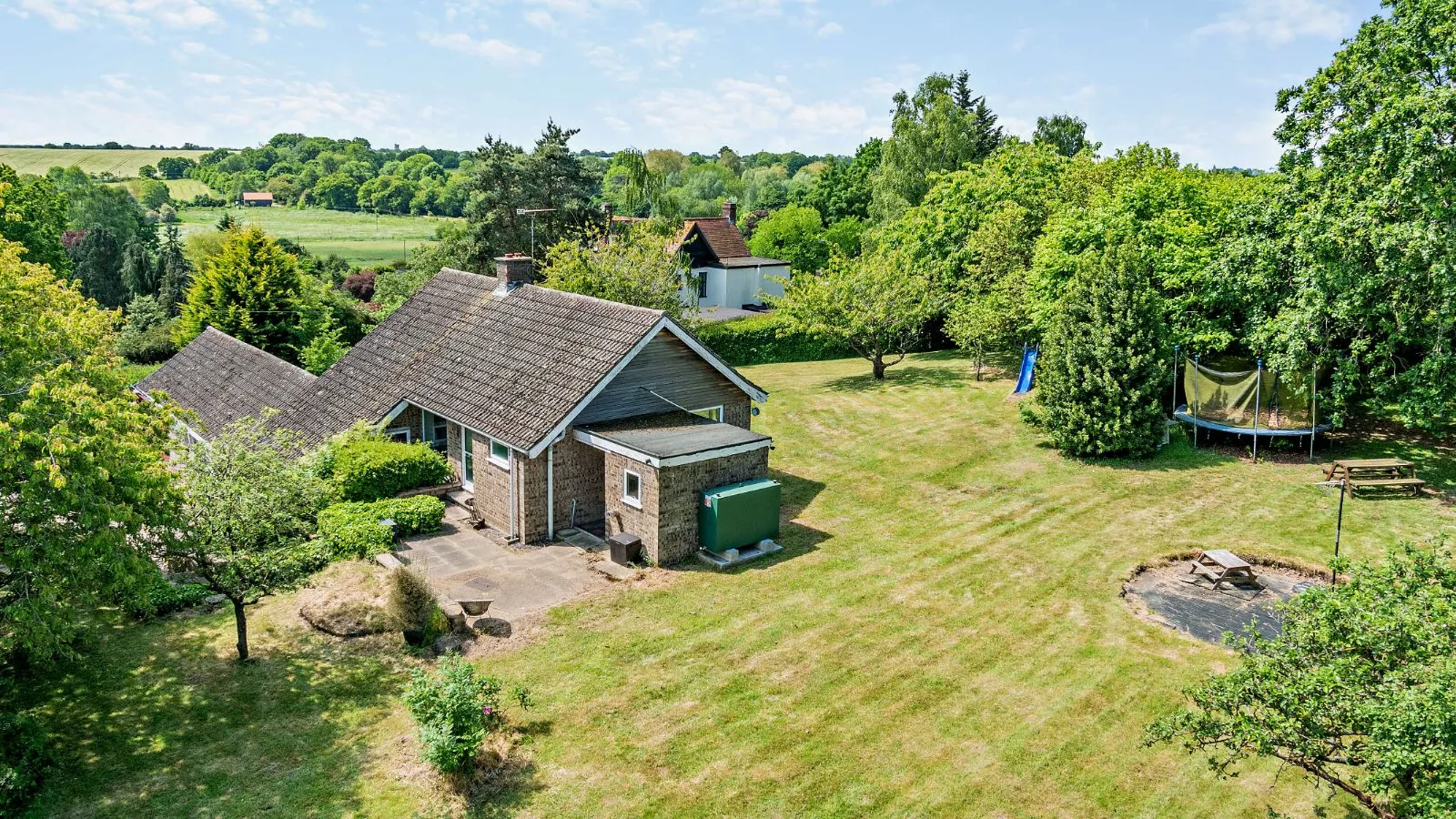 The property is approached over a long concrete driveway, the beginning section of which is shared with a neighbouring property, and provides ample parking, as well as convenient access to the carport and garage. Both also have the potential to offer further internal space if incorporated into the main house. The gardens extend to just over half an acre and are mainly laid to lawn, wrapping around the house. With areas of terrace to either end of the house, making ideal spots for al fresco dining and entertaining, an ornamental pond to the rear and a boundary consisting of various shrubs, mature trees and fruit trees providing a wonderful feeling of seclusion.