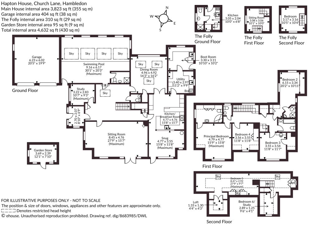 Hapton House, dating back to 1957, has remained in the same family for over four decades. The original timber-framed “Colt House” has been expanded with later additions, now offering over 3888 square feet of well-proportioned accommodation spread across three floors. Adjacent to the house stands a Grade II listed folly from the 1800s, providing excellent guest accommodation and currently generating income as a holiday let.