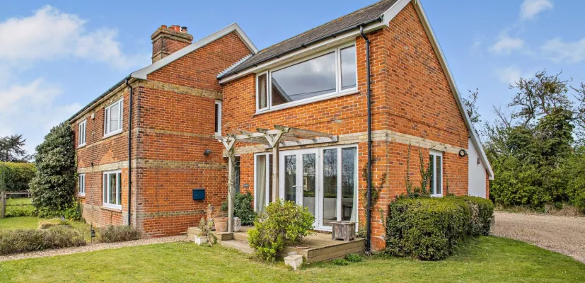A spacious reception hall offers a warm welcome with a fitted wood-burner. The sitting room has a feature fireplace and is filled with natural light courtesy of its triple aspect and French doors which open to a decked terrace, extending the inside to the outside. The kitchen is another bright room offering space for informal dining and with an adjoining alcove providing a utility for domestic appliances and a pantry, with the dining room adjacent; providing the ideal space for entertaining. The flexible-use study is reached from the sitting room and has skylight windows and terracotta tiled flooring. There is also a cloakroom. On the first floor, the principal bedroom has a large picture window offering views over the countryside and the river Stour; there are also two large walk in cupboards. There are three further bedrooms along with a family bathroom and a separate shower room.