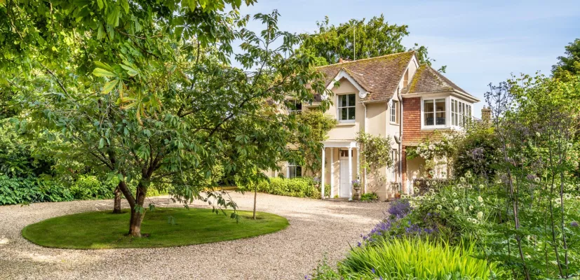 Studio and outbuildings There is a spacious vaulted studio which presents a buyers with a multitude of uses, but currently used as an art studio. Attached are wine and log stores and further storage. The well-maintained rear garden is laid mainly to lawn bordered by well-stocked flower and shrub beds. It features numerous seating areas, a summer house, lawn tennis court and part-covered paved terrace, ideal for entertaining and al fresco dining. It extends into a paddock with specimen trees and wild planting, and a small hand gate leads out to a footpath which leads to the village and countryside walks beyond.