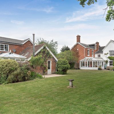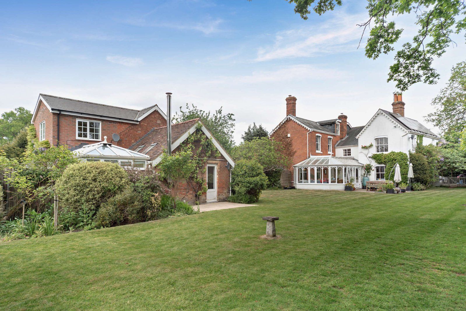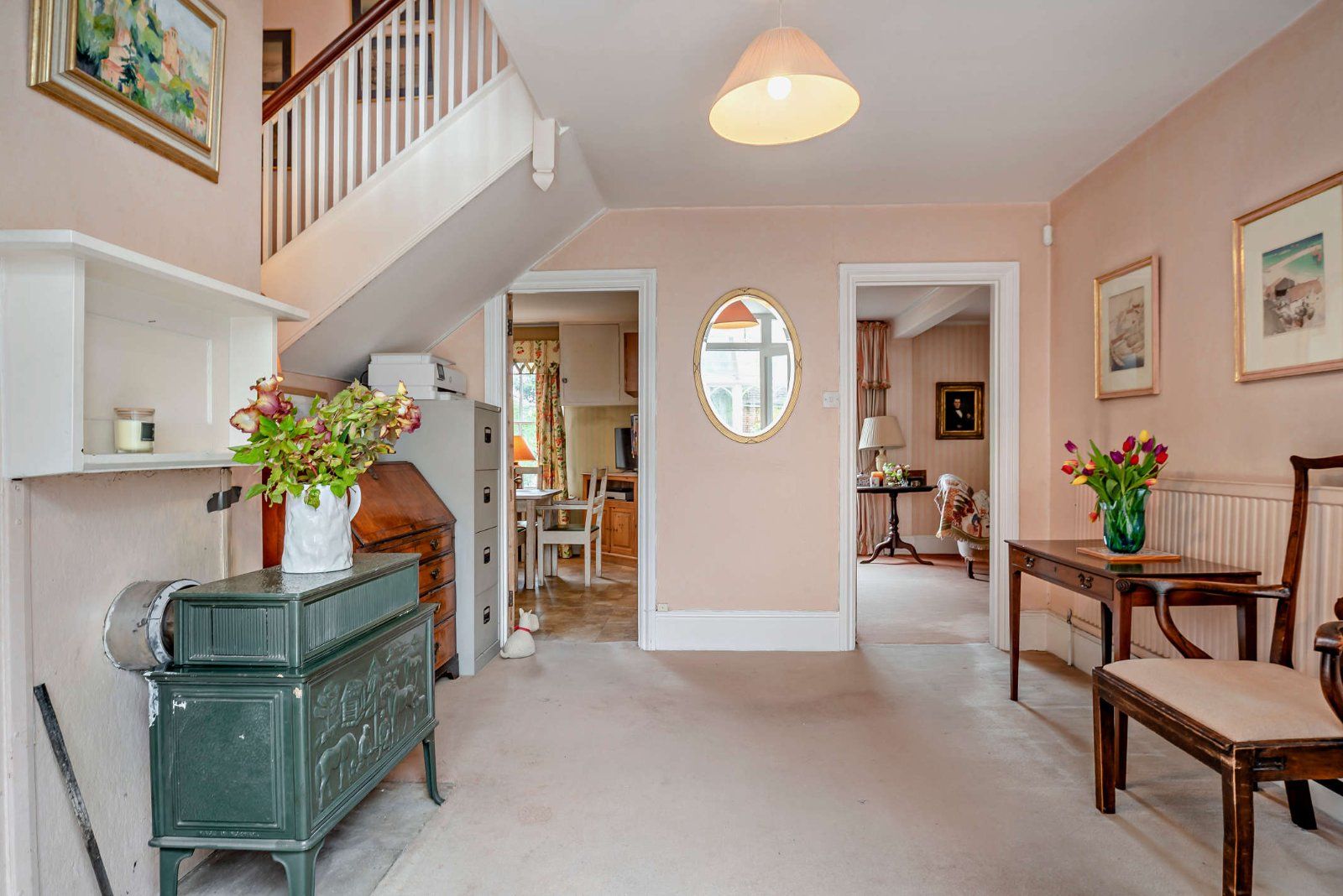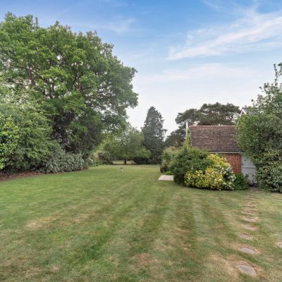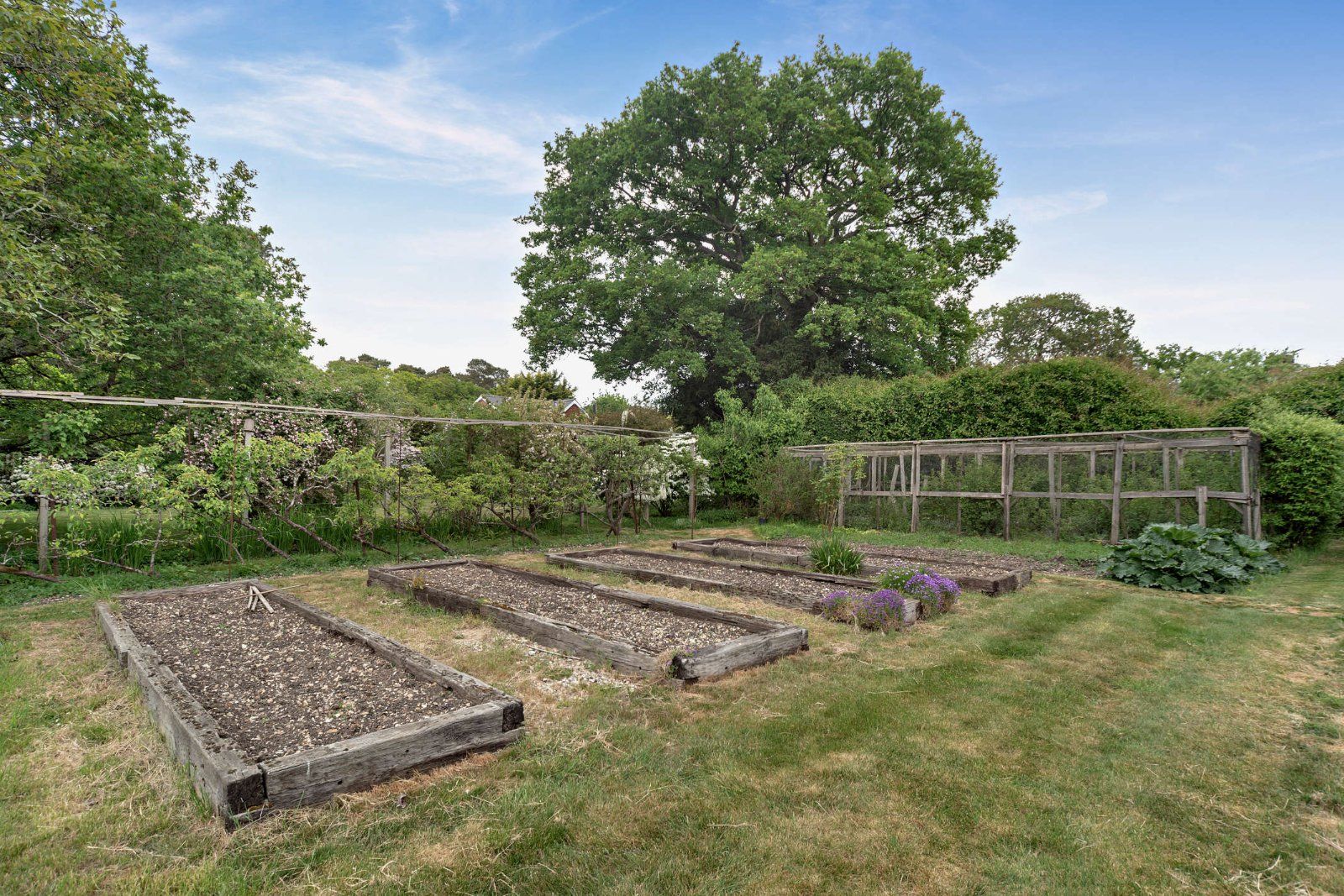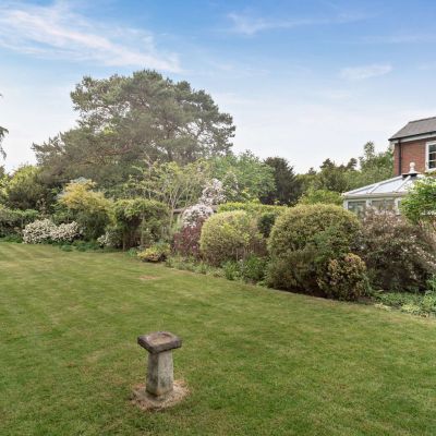 The far-reaching and well-maintained garden has an extended lawn as its centrepiece, bordered by well-stocked flower and shrub beds and mature trees. A tennis court sits towards the rear of the garden, whilst the lawn opens up to the side where a vegetable garden with raised beds and a fruit cage are located. Further lawn wraps around the tennis court, leading to an orchard at the rear of the garden.