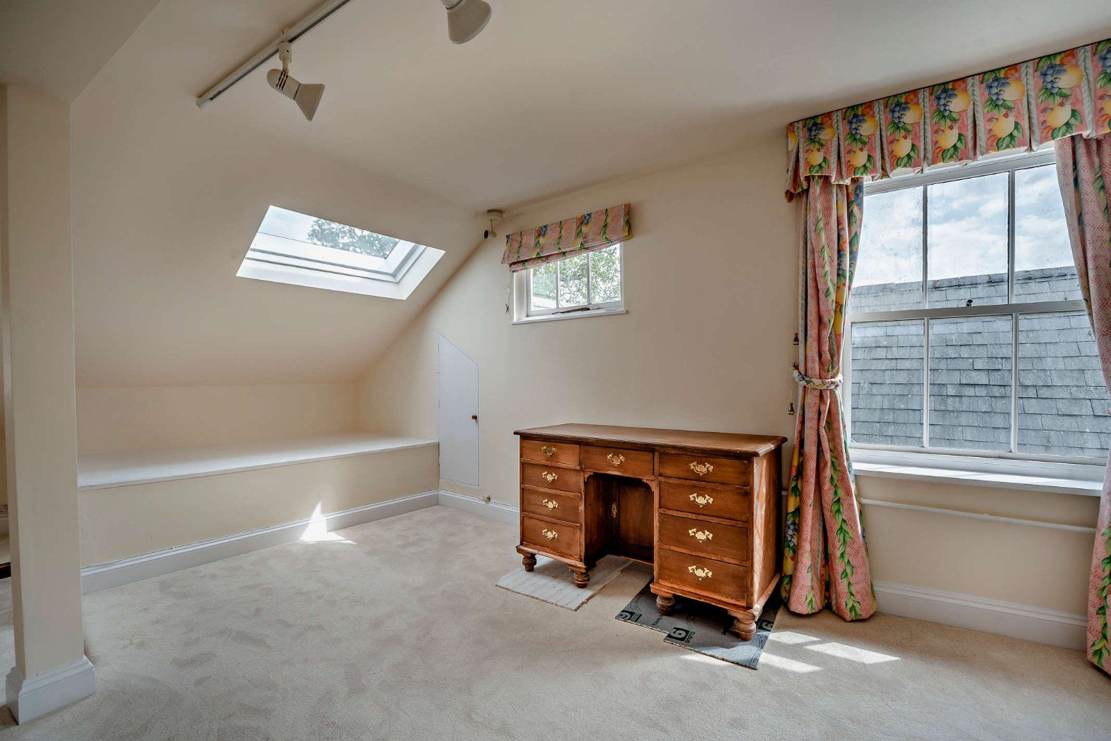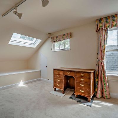 A separate staircase rises from the landing to a second floor attic room, suitable for a variety of uses including as an additional bedroom if required. This attic room also affords two extended eaves sections for ample loft storage.