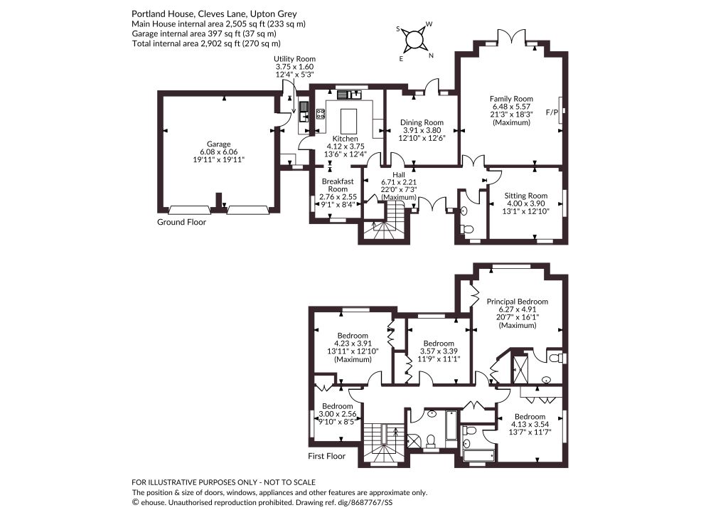 A turned staircase leads to the first floor, where you will find five double bedrooms, four of which are of similar proportions, while the large principal bedroom features built-in wardrobes and an en suite shower room. Each of the additional four bedrooms has fitted storage, with one bedroom also benefitting from an en suite bathroom. A family bathroom is also found on the first floor.
