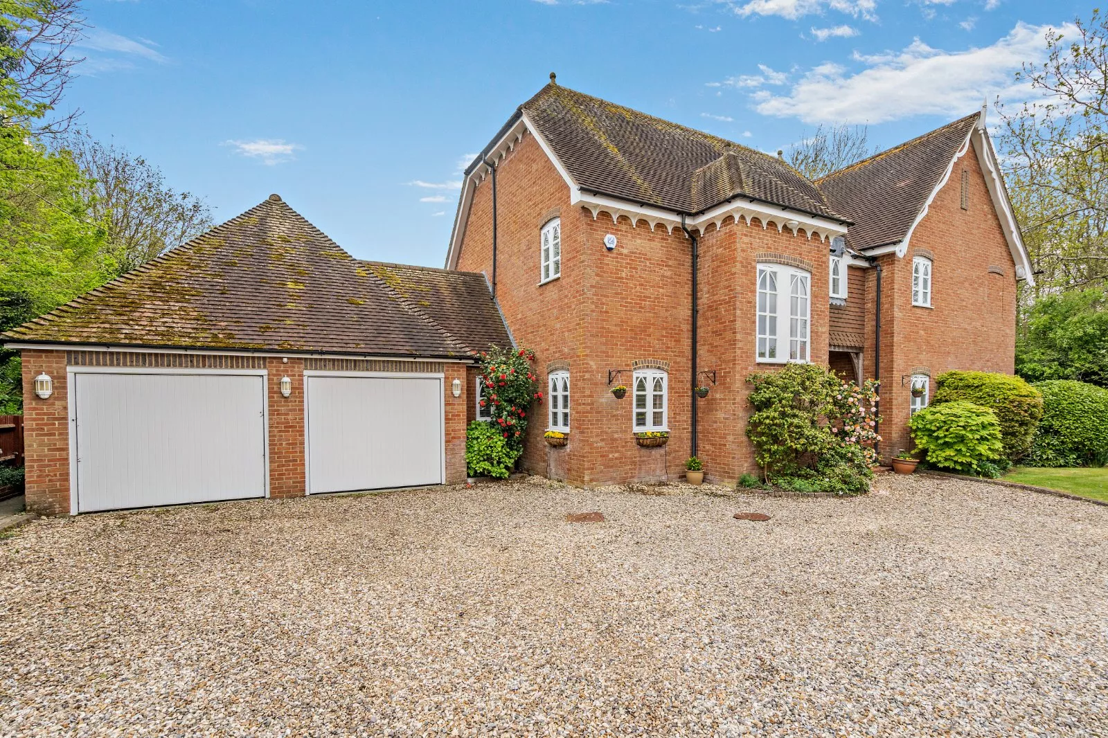 Outside, there is a gravel driveway at the front, with parking space for several vehicles and access to the double garage. The front gardens have an area of lawn and various border shrubs, trees and hedgerows. At the rear, the gardens enjoy a high degree of privacy, shaded by mature trees. They include a patio for al fresco dining, with a lawn beyond and borders of established shrubs, hedgerows and flowering perennials.