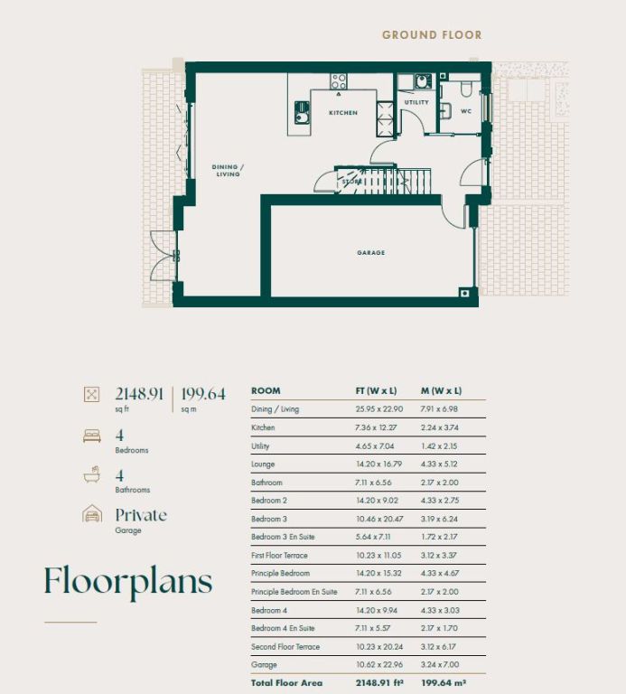 A four bedroom, four bathroom home with South-West facing garden, beautifully designed internal spaces, garage, EV charging point, garden and roof terrace.