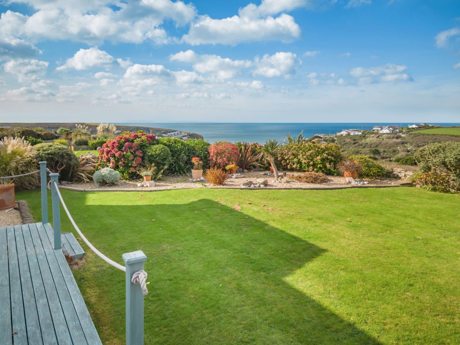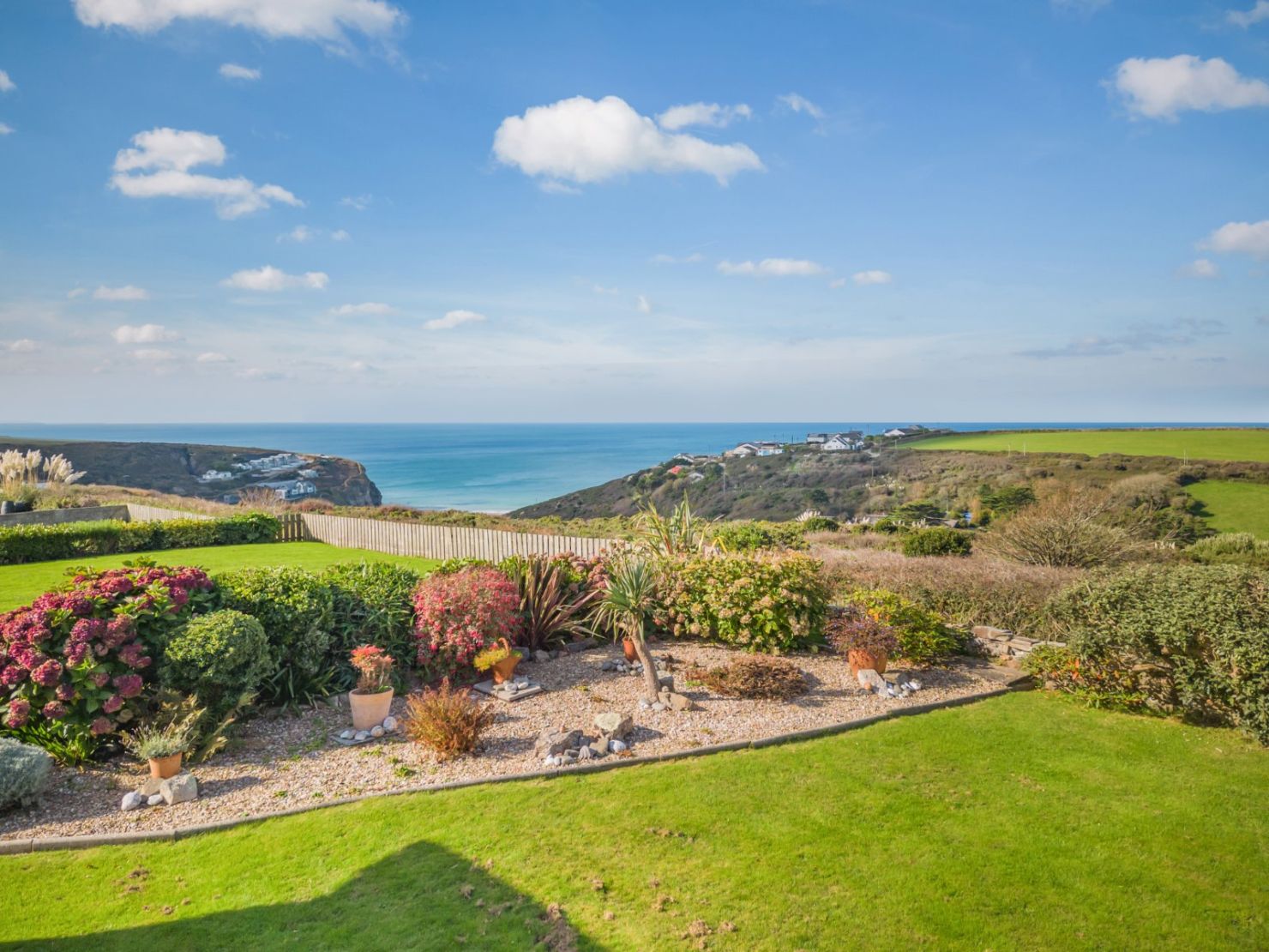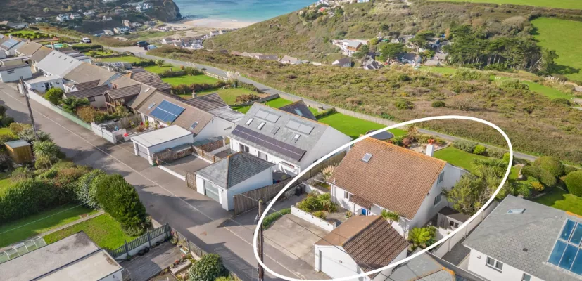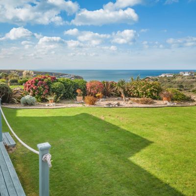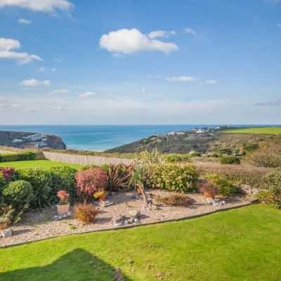 An attractive and spacious four/five bedroom home commanding stunning panoramic sea views, wonderful gardens, double garage, parking and still further potential, situated 0.5 miles from Porthtowan village and beach.