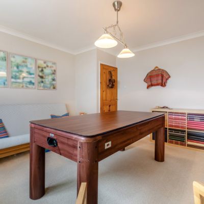 Two driveways provide parking for multiple vehicles plus an adjacent double garage with electric door. There is a sheltered southwest facing sunken courtyard to the rear, useful pockets of garden to the sides for sheds and the like, with the show piece to the rear. Decking, level lawn, rockery and attractive borders enjoy a spectacular backdrop of panoramic sea views and magical sunsets.