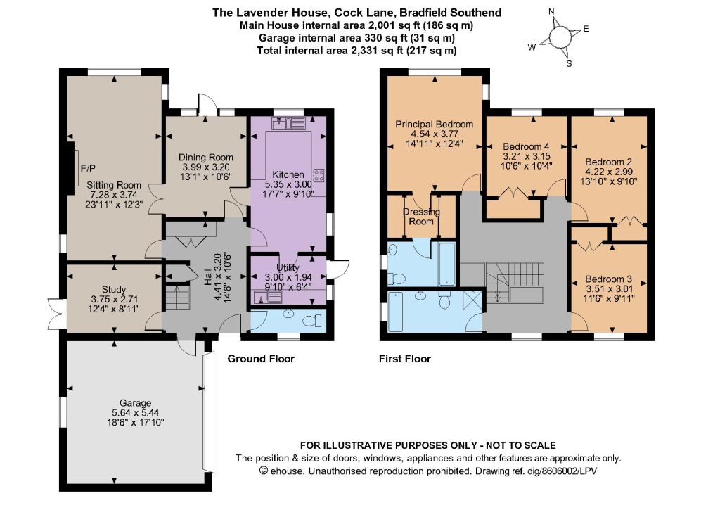 The Lavender House is a comfortable, modern, family home offering 2 000 sq. ft of well-laid out accommodation arranged over two floors and with a generous garden, built in 1996. The ground floor has a wide entrance hallway leading to three reception rooms. The largest being a nearly 300 sq ft sitting room with a dual aspect, feature brick fireplace and open fire and double doors through to a formal dining room. The well-proportioned dining room has a door out into the rear garden and is connected to the kitchen. The modern kitchen has been upgraded in the past couple of years with sleek base and wall units, glass splashback, electric range cooker and induction hob. A utility room is accessed via the kitchen and has external side access. In addition to a downstairs guest toilet, there is a final flexible reception room which has had various uses for the current owners whether a playroom, study or television room and also has double doors leading outside. Upstairs there is a galleried landing with four double bedrooms. Each bedroom has in-built wardrobe storage and the principal is not only very spacious but has a walk-though dressing area leading to an en-suite containing a bath with overhead shower. The large family bathroom serves the remaining three bedrooms and has a bath and separate shower cubicle.