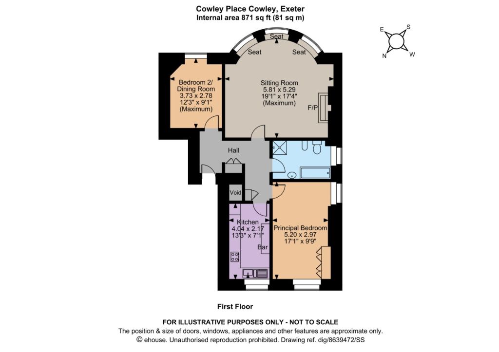 The spacious sitting room features an open fireplace and a tall sash bay window that has a south-facing aspect providing a wealth of natural light and wonderful views. The kitchen is well equipped, with wooden fitted units to base and wall level, a breakfast bar, an integrated fridge/ freezer, plus space for all the necessary appliances. The accommodation offers two double bedrooms with the principal bedroom benefitting from a dual aspect. The second bedroom is currently used as a dining room. The accommodation is completed by a bathroom with a separate bath and shower unit.